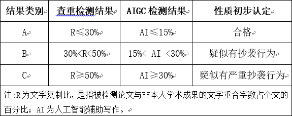 B类。学生须在指导教师指导下修改毕业论文,修改后再进行检测,检测合格者可申请答辩;修改后检测结果性质认定仍为“疑似有抄袭行为”的,由各学院答辩工作领导小组根据具体情况(毕业论文核心内容是否存在抄袭现象)给出书面处理意见:①可申请答辩;②需重做毕业论文,延期答辩。