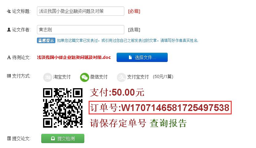 提交论文成功后,请收藏我们网站,并保留好订单编号,检测期间可关闭网页,稍后用订单编号查询结果下载报告。检测时间30-180分钟(高峰时期可能要排队一至两小时)。检测报告为压缩包,解压后用即可打开。